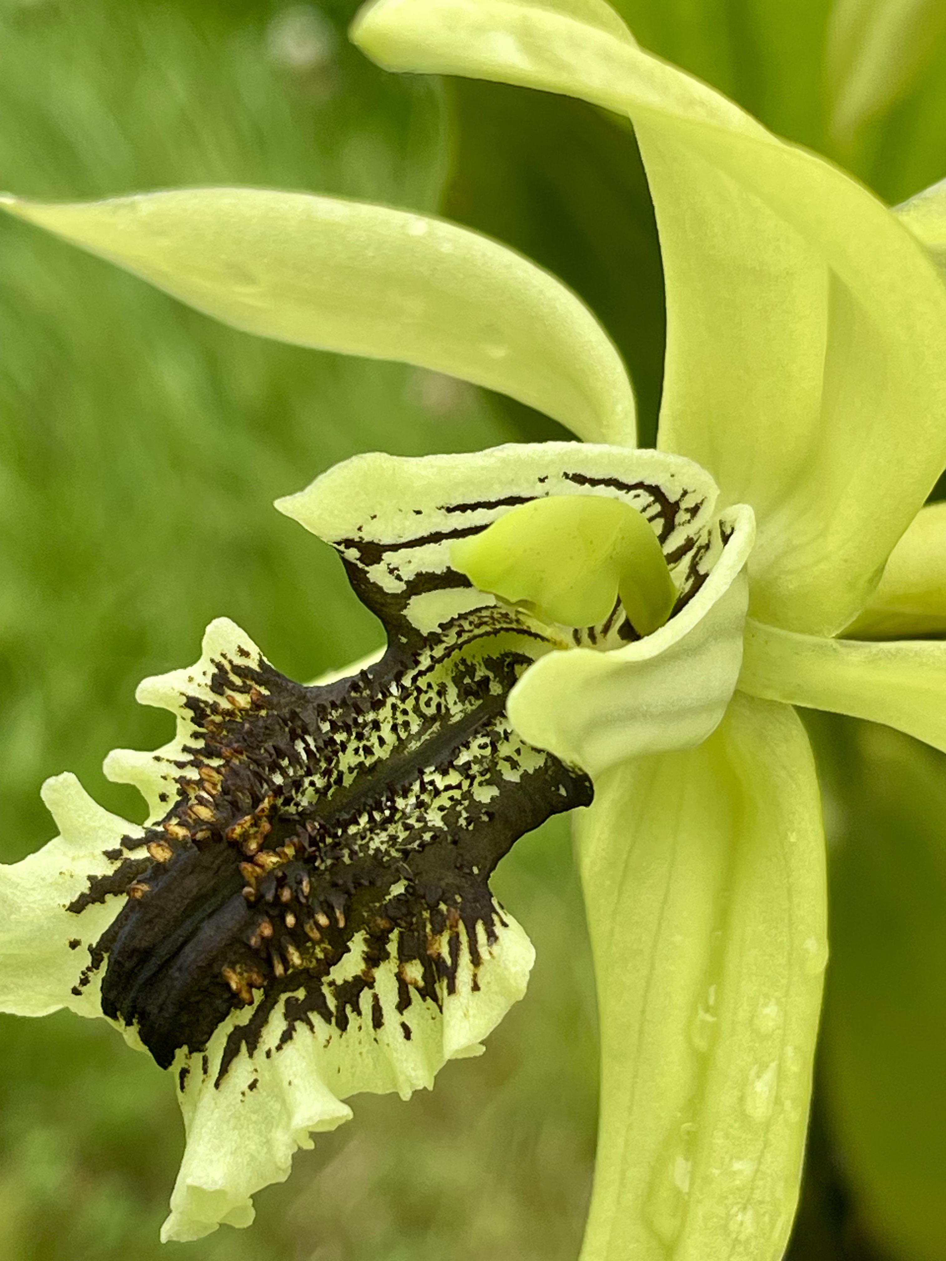 This is Coelogyne Burfordiense (asperata x pandurata). Grown in 50:50 Sphagnum:Perlite. 4 new growth and 3 spikes with this first one opening yesterday 😍
